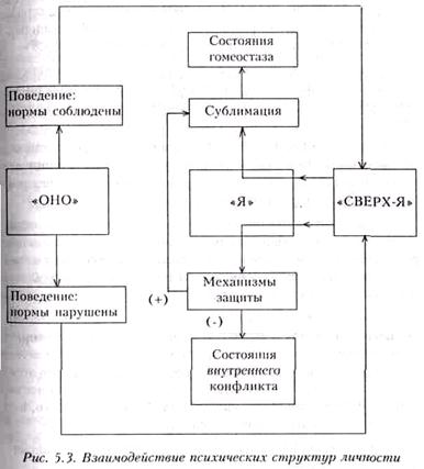 В первом случае возникает состояние гомеостаза, уравновешенности личности. Во втором решение «Я» приводит к состоянию внутреннего конфликта. Чтобы избежать психических расстройств, необходимо подключить механизмы психологической защиты (вытеснение желаний, отрицание, рационализация, противодействие, проекция, замещение, изоляция, регрессия). Отказ системы защиты приводит к психическим заболеваниям, вызывающим патологические деформации в структуре «Я».