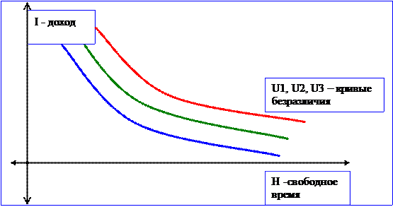 Точки на кривой безразличия обозначают одинаковую полезность для индивида на рынке труда.