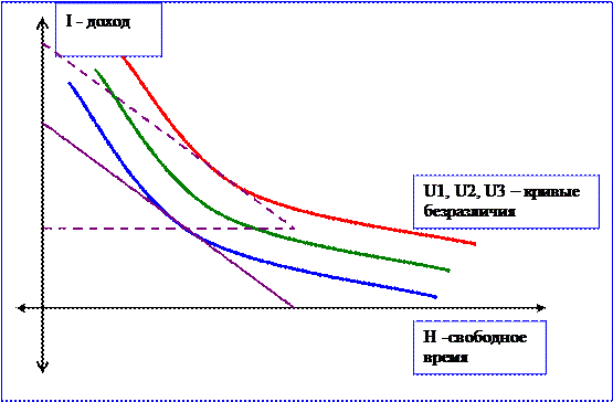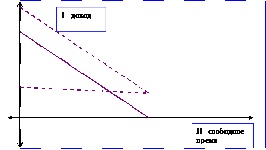 1) Эффект замещения – замена часа свободного времени часом труда ведет к увеличению потребления набора товаров и услуг. Эффект замещения ведет к росту предложения на рынке труда.