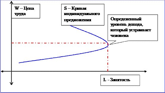Индивидуальное предложение на рынке труда – это количество часов в неделю, месяц и год, на протяжении которых индивид хочет работать.