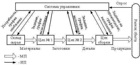 Материальный поток на своем пути от первичного источника сырья до конечного потребителя проходит ряд производственных звеньев. Управление материальным потоком на этом этапе имеет свою специфику и носит название производственной логистики.