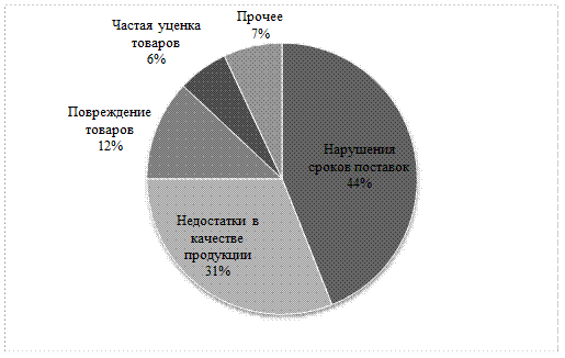 Рисунок – Наиболее часто встречаемые недостатки при логистическом обслуживании потребителей