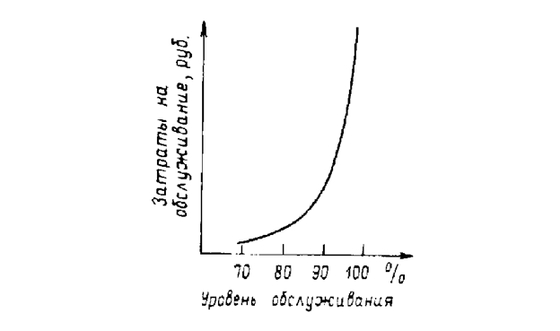 Зависимость расходов на сервис от величины уровня обслуживания показана на следующем графике
