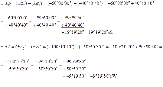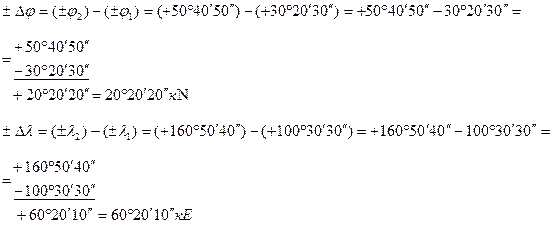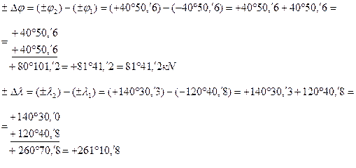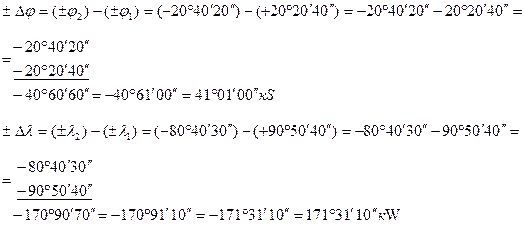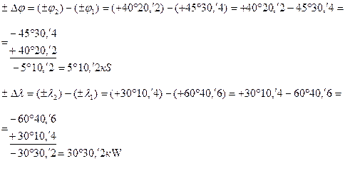 9. Величину разности широт и разности долгот двух точек вычисляют с помощью алгебраических формул: