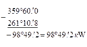 вычитают из трехсот шестидесяти градусов, а знак – меняют на противоположный: