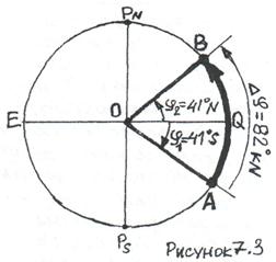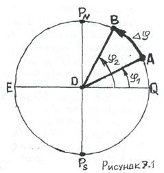 6. Дугу меридиана АВ обозначают стрелкой, которая показывает направление движения судна из начальной точки А в конечную точку В в сторону северного истинного полюса земли PN. Поэтому дугу АВ подписывают