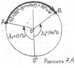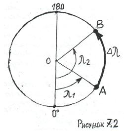 7. Величину разности долгот двух точек измеряют меньшей дугой земного экватора, которая заключена между меридианами этих точек. Поэтому диапазон измерения разности долгот