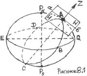 Кривизна земного эллипсоида – это величина, которая характеризует отклонение поверхности этого эллипсоида от касательной плоскости Н-Н в точке наблюдателя (рисунок 8.1). Равноудаленные во всех направлениях от наблюдателя А точки эллипсоида неравномерно отклонены от касательной плоскости Н-Н. Поэтому общую кривизну земного эллипсоида в окрестности точки А определяют средним значением кривизны по главным направлениям N-S и E-W. Таким образом, для определения кривизны земного эллипсоида в точке А необходимо определить кривизну меридианного сечения PNAQPSE и кривизну сечения по первому вертикалу АВСD.