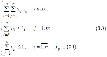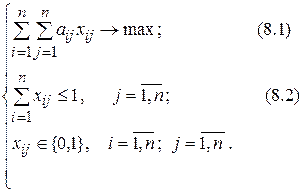 с целыми неотрицательными коэффициентами. Найти такое подмножество ее элементов, что а ) в каждом столбце и в каждой строке находится не более одного выбранного элемента и б) сумма выбранных элементов является максимальной.