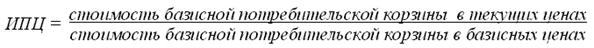 ИПЦ – индекс, в котором рыночная корзина представлена определенным, законодательно установленным набором товаров и услуг, называемым потребительской корзиной (частный вид рыночной корзины). Состав потребительской корзины фиксируется на уровне базисного года (Qi0), поэтому традиционно данный индекс рассчитывается с использованием формулы Ласпейреса.