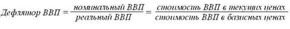 Дефлятор ВВП – индекс цен, в котором рыночная корзина представлена конечной продукцией (по структуре ВВП). Дефлятор ВВП отражает не только изменение цен (как ИПЦ), но и изменение структуры рыночной корзины и поэтому рассчитывается на основе формулы Пааше.