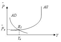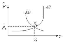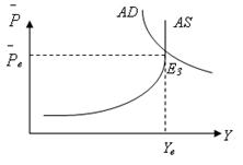 При этом кривая AD может пересечь кривую AS на любом из трех участков кривой совокупного предложения: горизонтальном (точка Е1), восходящем (точка Е2) и вертикальном (точка Е3).