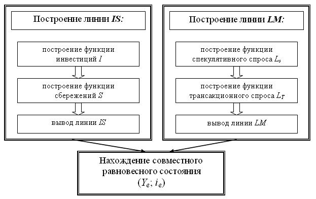 Модель IS - LM включает в себя построение линии IS, линии LM и их совмещение на одной координатной плоскости.