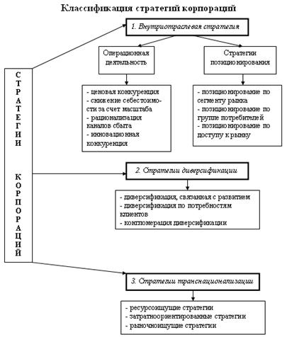 Стратегия корпорации — это способ осуществления ее целей в меняющихся рыночных условиях. На рис. 2.изображена классификация стратегий международных корпораций: