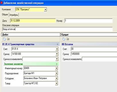 Рис. 2.2. Окно для заполнения хозяйственной операции.