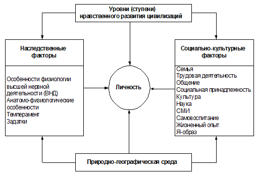 Как отмечалось, трудовая активность личности – это сложнейшая система, обусловленная взаимодействием природных и культурных, материальных и духовных факторов, или детерминантов. В биологическом плане субъект выступает носителем соматических (телесных), физических и физиологических способностей. В социально-культурном плане люди вступают в отношения, используя свои интеллектуальные (уровень образования, память, речь) и волевые качества (целеустремленность, уверенность, дисциплинированность), а также эмоции и чувства (честь, совесть, гордость, достоинство, такт, любовь, зло, ненависть, страх).