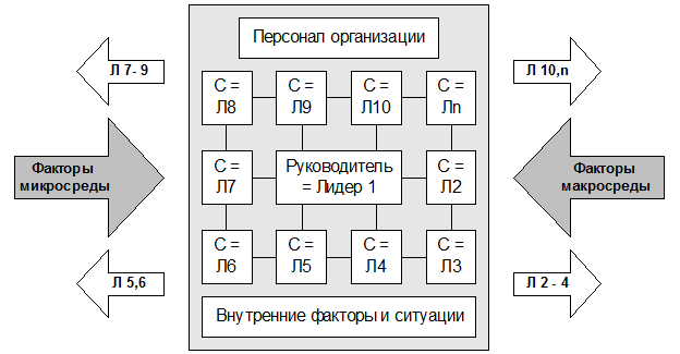 Рис. 28. Интерактивно-ситуационная концепция лидерства