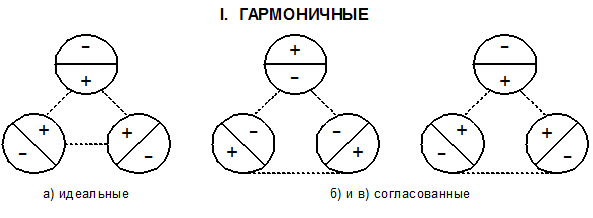 Рис. 29. Варианты взаимоотношений в микрогруппе-триаде[71]