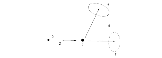 4- рассеянные частицы; 5- флюоресцирующий экран; 6- неотклонившиеся или слабо отклонившиеся частицы.