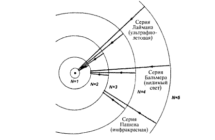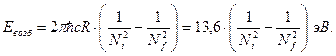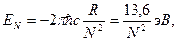 где N –главное квантовое число, определяющее энергии различных состояний в атоме водорода (N =1,2,3…) см. рис. 2.1, а R – постоянная Ридберга (1,0974·105 см-1).