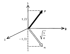 Рис. 3.5. Векторы состояний протона и нейтрона в изопространстве.