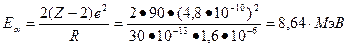 Из опытов Резерфорда следовало, что радиус ядра (в частности U) не более 30 Фм. Из этого следовало, что энергия a-частиц (если следовать гипотезе Кельвина) будет равна