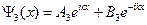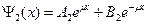 В области I, кроме падающей на барьер волны A1eikx, движущейся в положительном направлении оси х, имеется отраженная от барьера волна B1e-ikx, движущаяся в противоположном направлении. В области III должна быть только волна A3eikx, распространяющаяся в положительном направлении оси х, а значит B3= 0. Учитывая, что нас интересует коэффициент пропускания потенциального барьера (область II), который равен отношению плотности прошедшего потока (jd~| A3eikx|2 к плотности падающего (j0~| A1eikx|2, мы можем всегда выбрать падающий поток такой величины, чтобы A1 =1. Таким образом, волновая функция приобретает вид