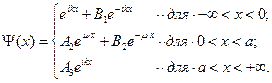 Разобьем все пространство на три области: I) от -∞ до 0; II) от 0 до а; III) от а до +∞ (см. рис. 5.2.).Запишем уравнения Шредингера и его решения для этих областей.