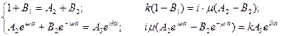 Для нахождения амплитуд волн В1, А2, В2 и А3 воспользуемся условием непрерывности волновой функции и её первых производных на границах областей. В результате получим систему линейных уравнений относительно В1, А2, В2 и А3: