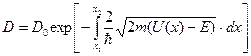 Пусть ширина одного из таких прямоугольников равна dx, высота U(х). Если dx взять достаточно большим, то коэффициент пропускания такого барьера представляется выражением