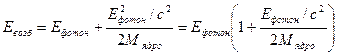 Излучаемый фотон уносит не всю высвобождаемую энергию. Имеется ядро отдачи с импульсом, равным импульсу фотона Р ядро= Р фотон = Е фотон/с.