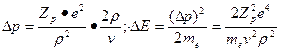 Попробуем понять, как получается эта величина. Пусть мы имеем тяжелую заряженную частицу mp>>me с зарядом Ze. Будем считать, что r-это некий эффективный радиус взаимодействия и для летящей частицы длина цилиндра, в которой происходит это эффективное взаимодействие будет 2r. Из классической механики известно, что изменение импульса Dp=F·Dt. Так как сила кулоновского взаимодействия F и время Dt равны соответственно