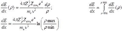 . Для того, чтобы учесть от всех электронов, следует определить их число в слое dr на радиусе r и длине dx. dE=DE·Vp·ne=DE·2prdr·dx·Zвещ·nвещ, где Zвещ и nвещ -порядковый номер и удельная плотность вещества, соответственно. Отсюда: