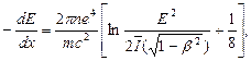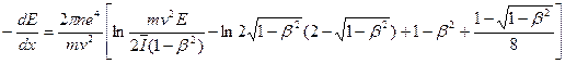 Качественно механизм ионизационных потерь в случае легких частиц такой же, что и в случае других заряженных частиц. Поэтому для электронов применима прежняя формула (6.3) с той только разницей, что из-за малости массы электрона и квантовомеханических эффектов обмена пределы интеграла (rmin, rmax) должны определяться иначе. С учетом этих и некоторых других факторов Бете получил следующую формулу для ионизационных потерь электронов: