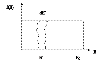 Чтобы получить распределение после третьего столкновения, рассмотрим зависимость f2(E), предварительно разбив её на узкие полоски шириной dE’ с энергией E’. Число нейтронов в такой полоске будет