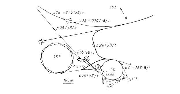 На основе ускорителя на 500 ГэВ (ЦЕРН см. рис. 7.5) были созданы ускорительные комплексы на встречных протон-антипротон пучках, на которых удалось открыть W± и Z0 –бозоны.