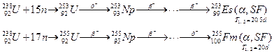 получаются в результате следующих процессов. При взрыве водородной бомбы некоторые ядра урана одновременно захватывают 15 или 17 нейтронов