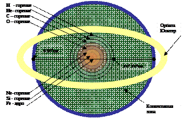 Рис. 9.5. Строение красного сверхгиганта с массой М O> 10М Q