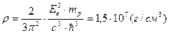 В релятивистском случае можно принять скорость электрона приблизительно равной скорости света, тогда ре» Ее/с, где Ее – энергия Ферми вырожденного электронного газа. Электрон можно считать релятивистским уже при энергиях Ее³ 0,5 МэВ. Взяв для энергии электрона значение Ее =1 МэВ,получаем:
