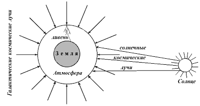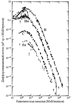 Рис. 9.9. Галактические и солнечные космические лучи. |