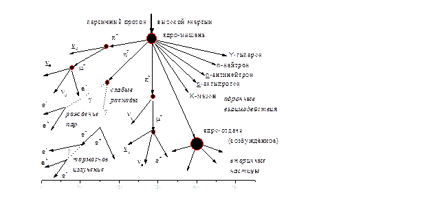 -кванты последующих поколений. Заряженные лептоны теряют энергию на ионизацию и радиационное торможение. Поверхности Земли в основном достигают релятивистские мюоны. Электронно-фотонная компонента поглощается сильнее.