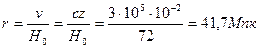 Приняв значение постоянной Хаббла Н0 = 72 км/(с•Мпк), находим