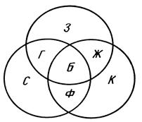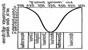 | Рис. 3. Кривая спектральной чувствительности глаз | Рис. 4. Смешение трех основных цветов: З – зеленый, К – красный, С – синий, Г – голубой, Ж – желтый, Ф – фиолетовый, Б – белый |