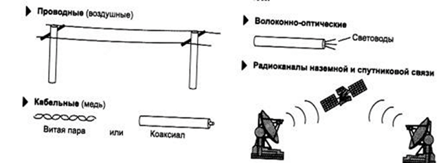 В зависимости от среды передачи данных линии связи разделяются на следующие (рис. 2.2.):
