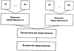 Описание хранимой и обрабатываемой информации в ЭИС делается с разной степенью детализации. Используются три уровня представления (рис. 1.11):