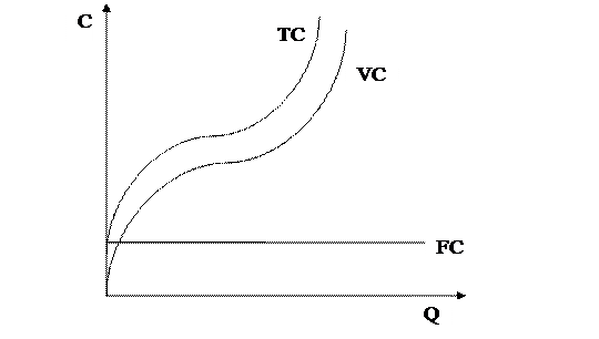 Рис. 4.6 Кривые постоянных, переменных и общих издержек