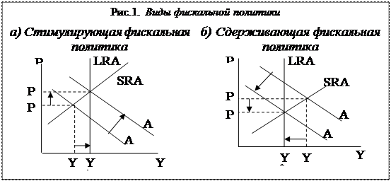 Выделяют два вида фискальной политики: 1) стимулирующую и 2) сдерживающую.