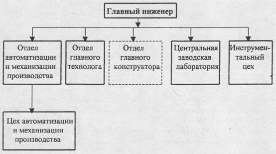 Технологической подготовкой производств новых изделий РЭС обычно занимается, на типовом отечественном предприятии, следующий состав основных служб (подразделений) подчинённых по следующей схеме: