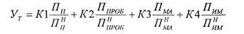 С учётом значений четырёх показателей, уровень ТП рассчитывается по следующей формуле: