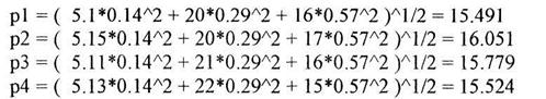 р2 = 5.15*0.14 + 20*0.29 + 17*0.57 = 16.211